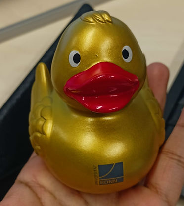I took part in a fun post-it competition organized by the international office at Uni Bonn for PhD students. We were invited to write or draw fun stuff about our PhD on colourful post-its. The post-it with the maximum number of votes was chosen as the winner with a cute tiny golden duck as the prize. Look who took the cute duck home!